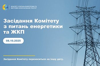 Засідання Комітету з питань енергетики та житлово-комунальних послуг від 08 жовтня 2025 року переноситься на іншу дату.