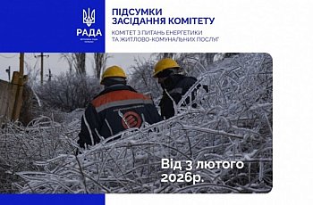 У вівторок 03 лютого 2026 року розпочнеться засідання Комітету з питань енергетики та житлово-комунальних послуг. Початок заплановано на 16:00